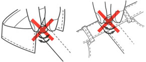 When applying an iron to the zipper, be sure to cover it with a cloth. Be cautious of the zipper's heat tolerance (and the heat tolerance of the product itself). Please refer to “precautions on zippers use”