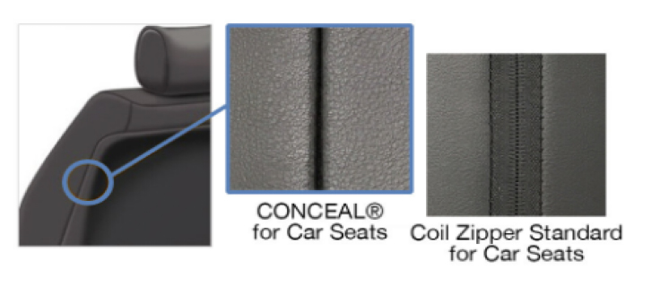 CONCEAL® zipper (Item Code: 5CCPLF8) designed to use for car seats is now available.